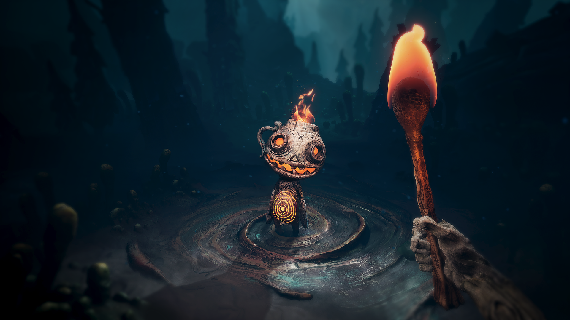 En av de saker som gör The Midnight Walk unikt är dess visuella uttryck. Allt du ser från slingrande landskap till hotfulla varelser – har först skulpterats för hand i riktig lera och papp, och därefter 3D-skannats in i spelet. Resultatet är en suggestiv och konstnärlig värld animerad stop motion-stil.