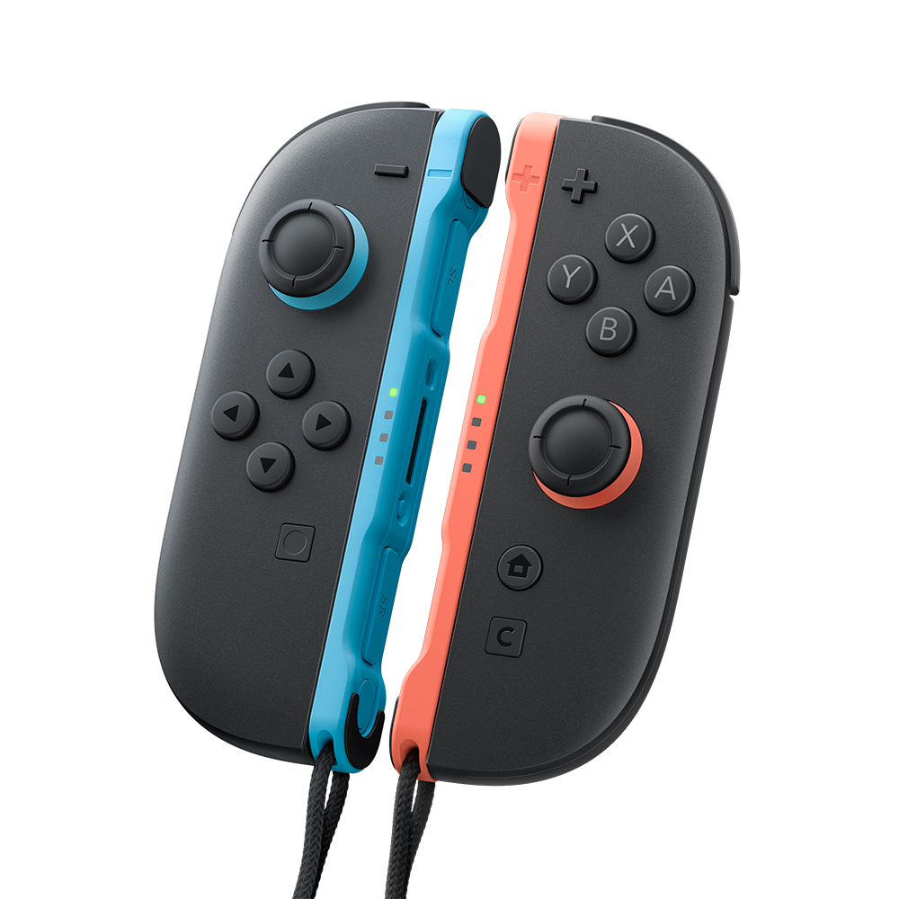 De uppdaterade Joy-Con 2-kontrollerna har lättanvända rörelsekontroller och HD Rumble 2, samt den nya C-knappen för enkel åtkomst till GameChat och helt nya muskontroller i kompatibla spel.